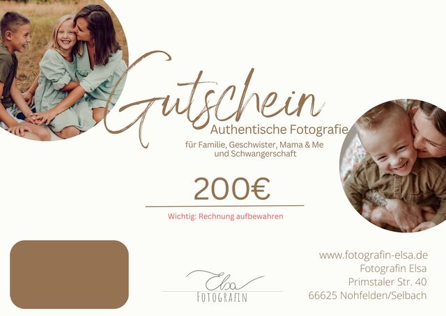 Ein Wertgutschein für ein authentisches Familienshooting, Mama & Me, Geschwistershooting oder Babybauchshooting. Auch für Aktion Shootings!